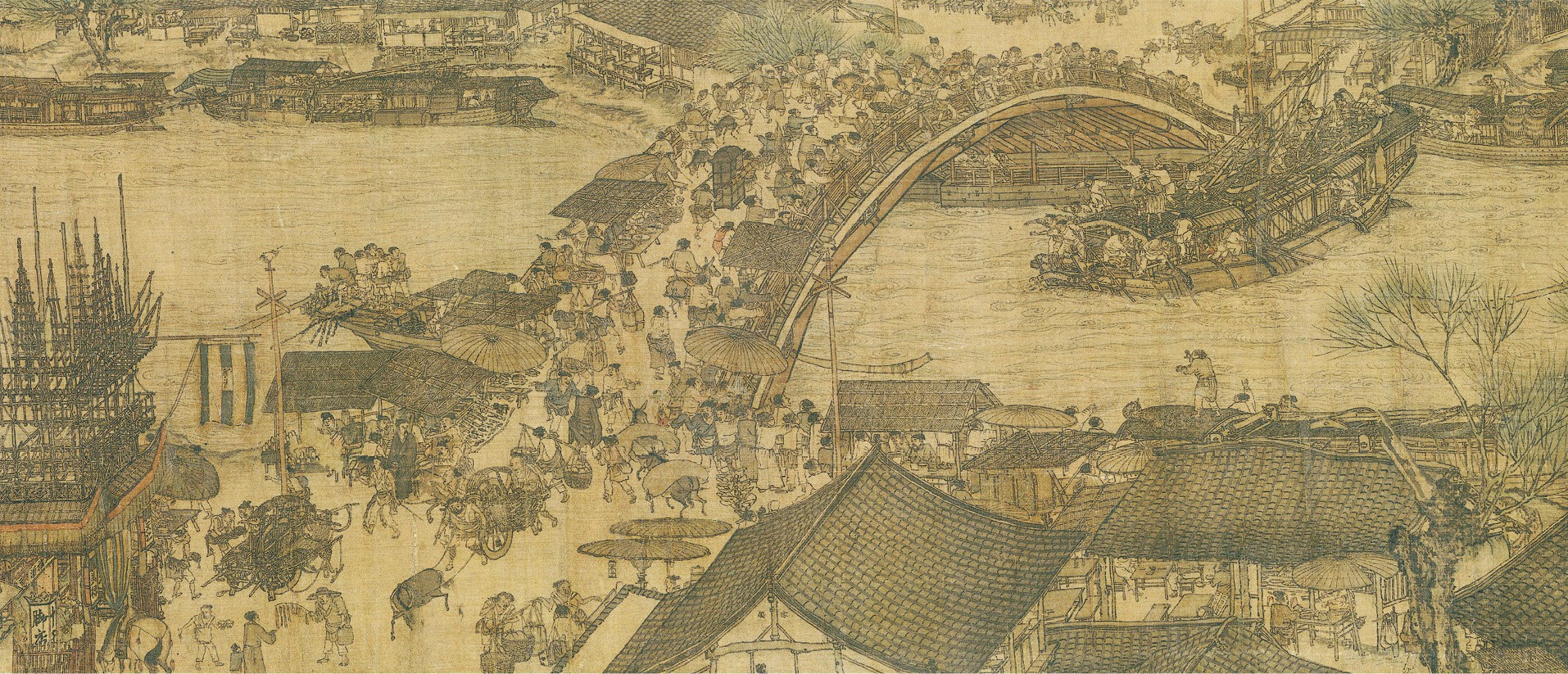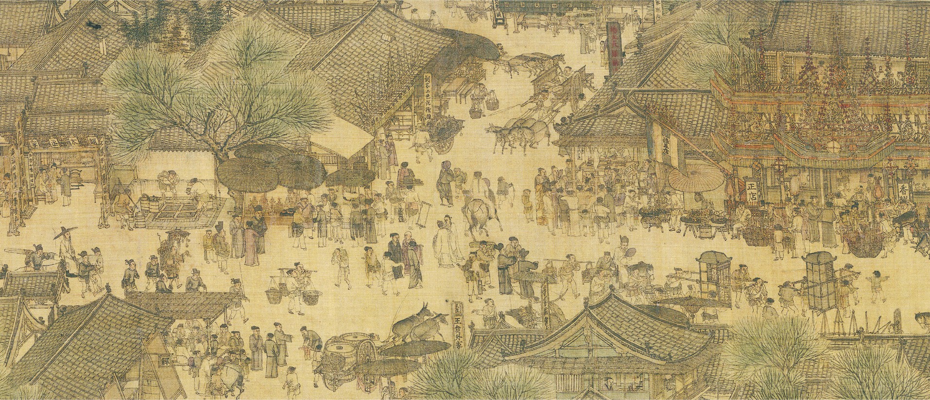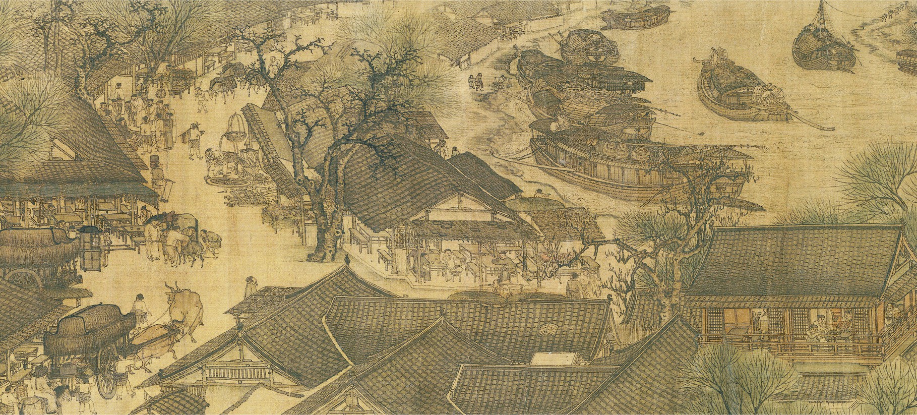 ◆ 《清明上河图》,北宋画家张择端绘,为中国十大传世名画之一,也是世界文化瑰宝,绢本设色,全卷纵24.8厘米,横528.7厘米。整幅画卷规模宏大、视角宽广,从北宋都城东京郊野画起,到汴河两岸风光,直至城门内街巷建筑,各类车马舟船、摊位店铺,近千个形态各异、身份有别的人物栩栩如生,全面、直观、真实地展现了东京的城市风貌和社会生活。全景式的构图和丰富的细节,让人身临其境。