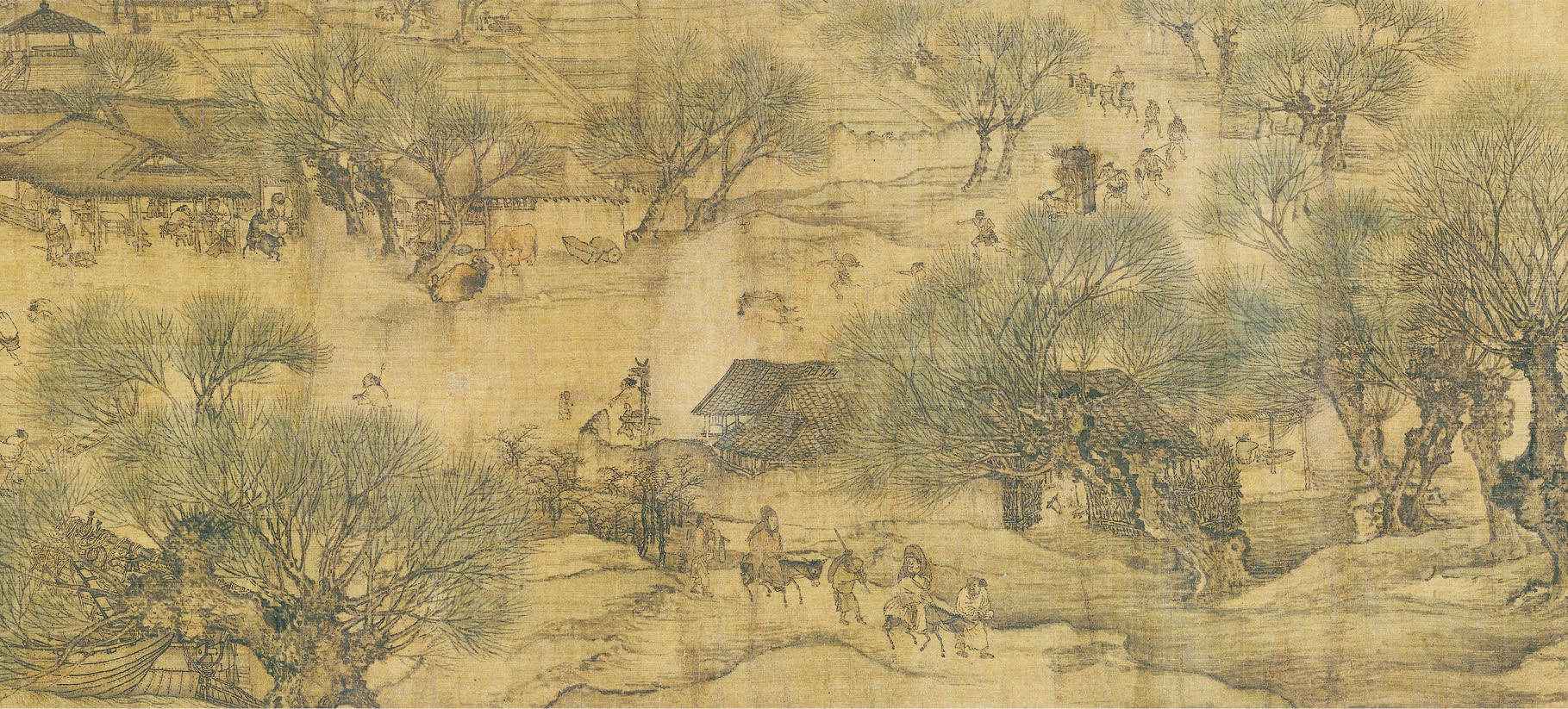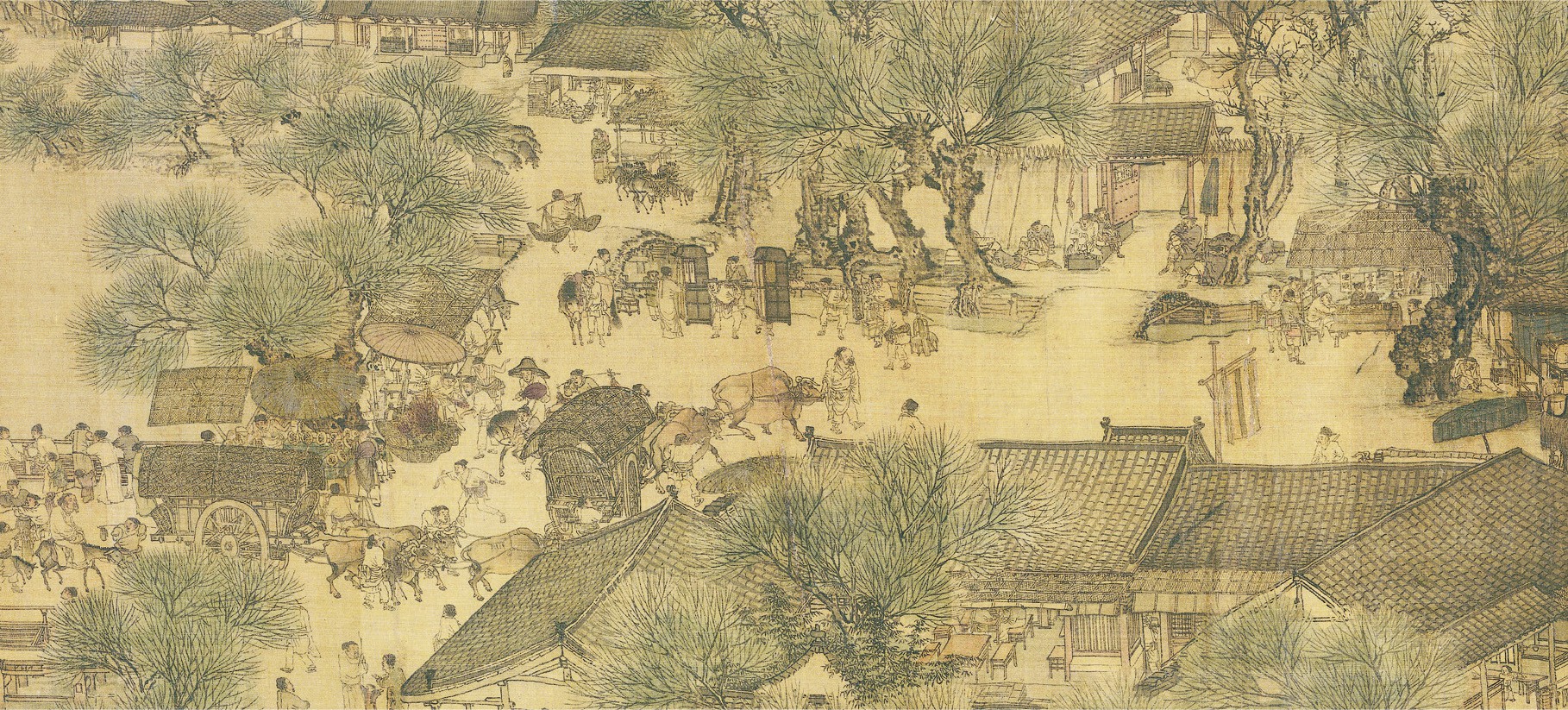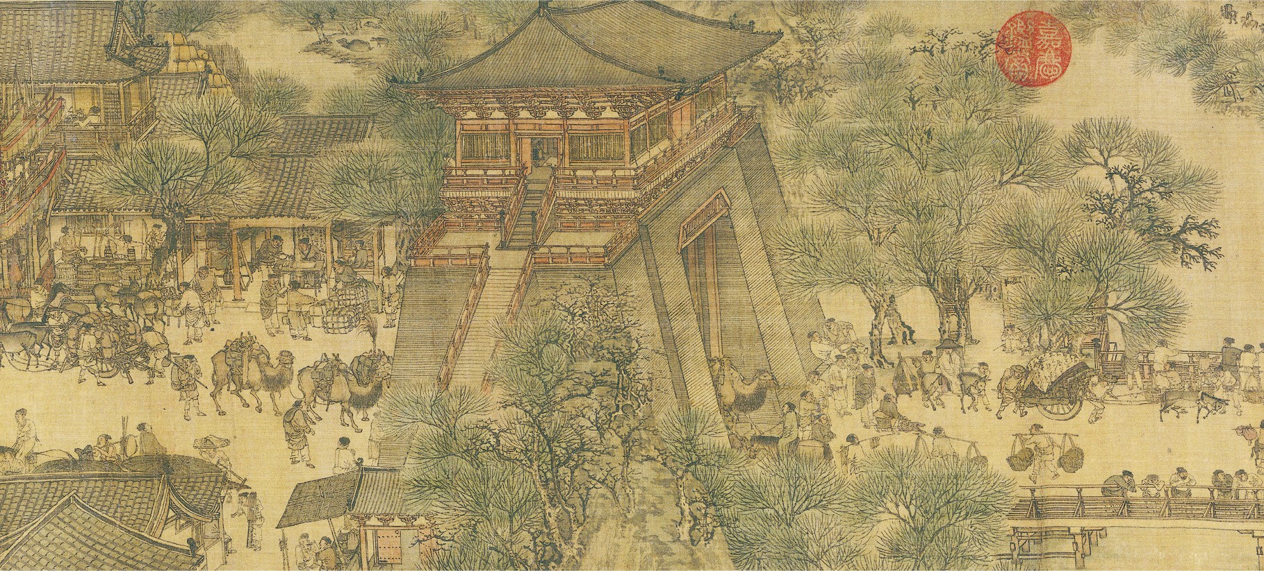 ◆ 《清明上河图》,北宋画家张择端绘,为中国十大传世名画之一,也是世界文化瑰宝,绢本设色,全卷纵24.8厘米,横528.7厘米。整幅画卷规模宏大、视角宽广,从北宋都城东京郊野画起,到汴河两岸风光,直至城门内街巷建筑,各类车马舟船、摊位店铺,近千个形态各异、身份有别的人物栩栩如生,全面、直观、真实地展现了东京的城市风貌和社会生活。全景式的构图和丰富的细节,让人身临其境。