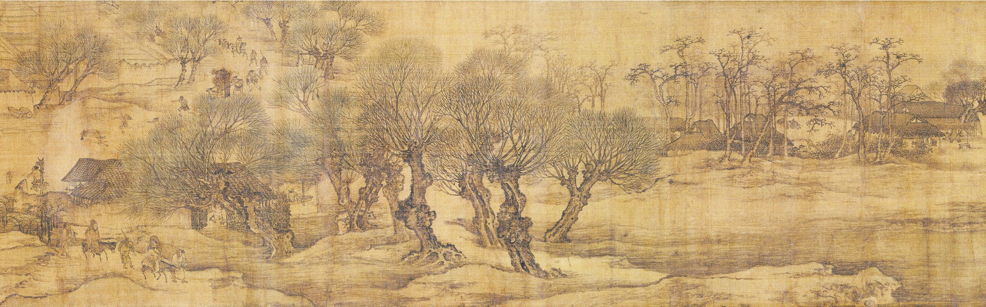 《清明上河图》局部 ◆ 汴京城郊,小桥流水,几户人家掩映树中,远处,一队车马缓缓而来
