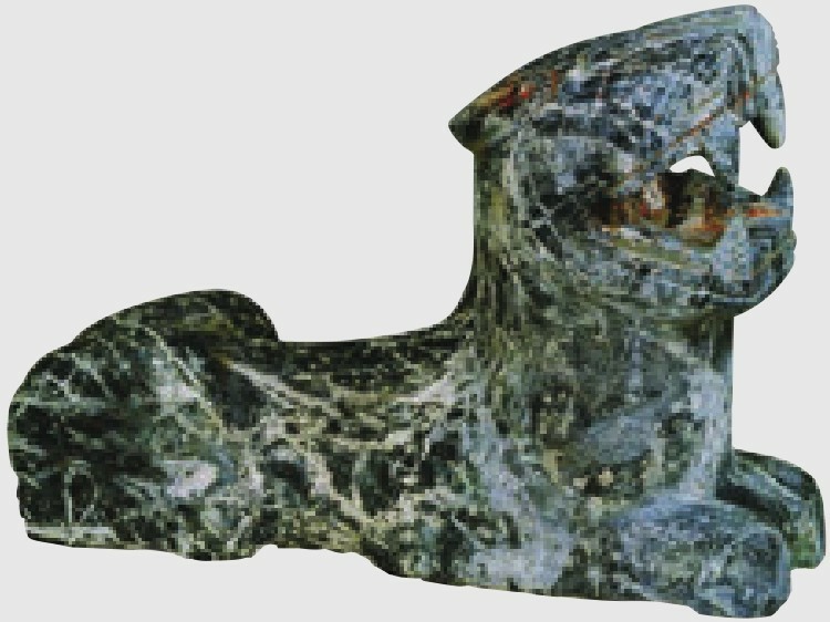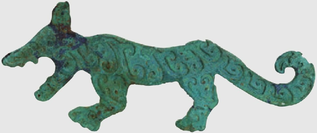 3-15 铜虎张口露齿,昂首怒目,双耳竖立,长尾上翘,正欲扑食猎物