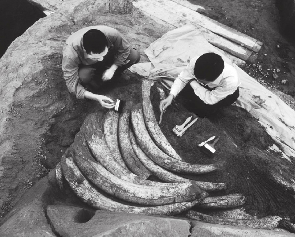 三星堆一号祭祀坑中残留大量烧骨渣,经鉴定为象的门齿与臼齿;彭县竹瓦街曾发现一批商周青铜器窖藏,铜罍上的大象栩栩如生,由此推测蜀人是见过象的,这才根据象的模样创造了这件艺术品。比起黄河流域,四川盆地气候更为湿润,林木茂盛,是百兽飞禽栖息的乐园。在金沙象牙坑北部,还分布着近500平方米的野猪獠牙、鹿角,以及犀牛、黑熊、猪獾、牛、马的牙齿,这些獠牙与鹿角至少来自1500头野猪与1000头鹿——金沙人真是高超的猎手。