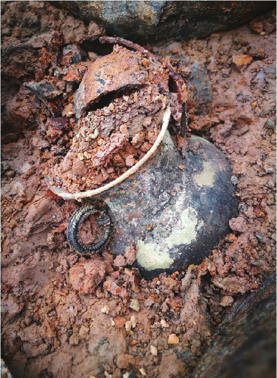 船棺中典型的圜底陶罐,罐中通常存放食物与种子