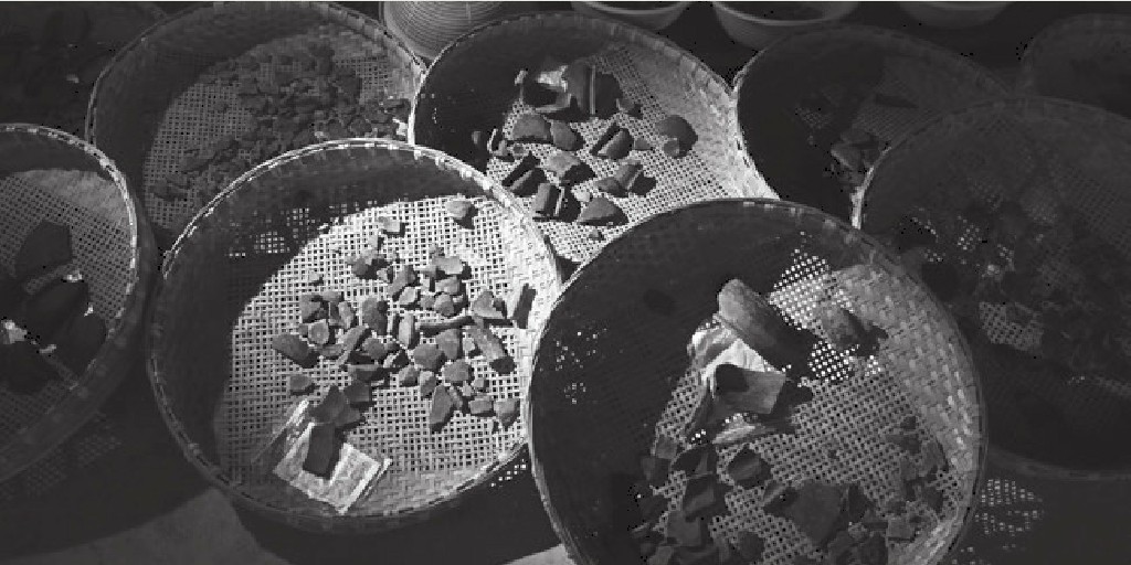 既然船棺与开明王朝有关,为何独独在蒲江县境内发现了如此多的船棺呢?答案可能与食盐有关。蒲江地处茶马古道要冲,自古盛产井盐,汉宣帝地节三年(前67)开蒲江盐井20所,设置盐官,宋代还曾设立盐井监,管理盐政,境内现存金釜、茅池、独孤、百家、大王、小王、金丝、琉璃等盐井20多处。金釜盐井地处光明乡金花村官帽山下,井口以方形石板砌成,临近的村落十多年前还用土法制盐,在房顶铺上竹枝,将卤水淋在上面,经过一段时间风干晾晒,卤水中的盐分在竹枝上结晶,收集起来足够家用了。