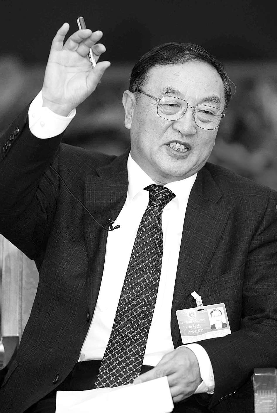 全国人大代表柳传志在全国“两会”新闻中心接受采访。