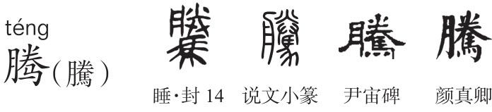 繁体作“騰”,形声字。《说文》:“騰,传也。从馬