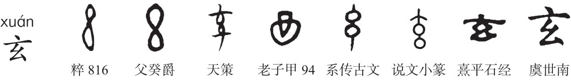 依附象形字。《说文》:“玄,幽远也。黑而有赤色者为玄。象幽而入覆之也。