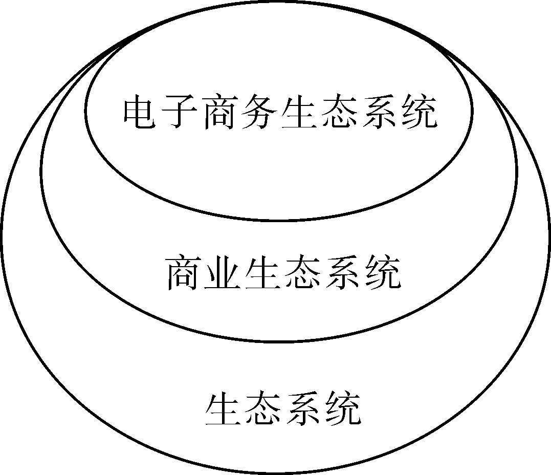 电子商务生态系统是借助于生态系统与商业生态系统理论而衍生的一个概念。叶秀敏等(2005)较早提出了网商生态系统的概念,提出网商生态系统是网商之间相互交换信息与资源,进行交易,伴随着竞争与淘汰,网商们努力与周围环境相适应,进而构成了一个不断完善、高速发展的以互联网为基础的商务生态系统,并提出网商生态系统是由网商、规则、互联网信息交流及产品交易平台、环境共同构成,该观点涵盖得也不全面,只是从电子商务生态系统中的网商角度提出的。刘志坚(2006)将生态系统与商业生态系统引入电子商务领域,提出电子商务生态系统是由一系列关系密切的企业与组织机构,超越地理空间位置的界限,将互联网作为竞争与沟通平台,通过虚拟、联盟等形式进行优势互补与资源共享构成一个有机的生态系统。胡岗岚等(2009)认为将互联网作为竞争与沟通平台,通过虚拟、联盟等形式进行优势互补与资源共享,构成了一个有机的生态系统就是电子商务生态系统。纪淑娴等(2012)认为电子商务生态系统是商务生态系统的一种,是由电子商务核心交易企业、金融服务企业、物流服务企业、政府等组织机构以联盟或虚拟合作等方式通过互联网平台分享资源,形成的一种生态系统,成员间信息共享、协同进化,实现自组织与他组织。郭旭文(2014)认为电子商务生态系统为一系列密切关联的企业与组织机构,超越地理局限,利用互联网络平台作为竞争与沟通环境,围绕核心电子商务企业,通过优势互补与资源共享联合成为一个有机的生态系统,该系统中各成员各司其职,促进物流、资金流与信息流的交换与循环,共同构成一个多层次、复杂的商业生态系统。