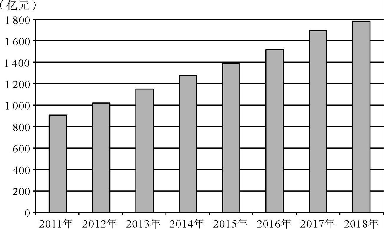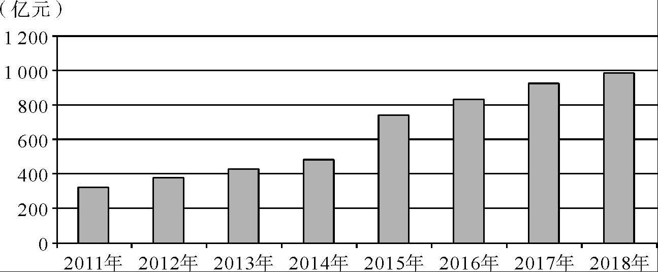 图 1-3 邵阳社会消费品零售总额(2011—2018 年)