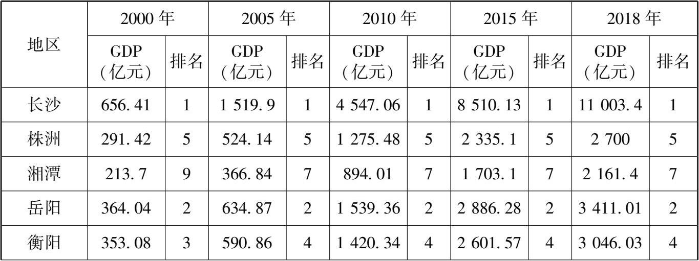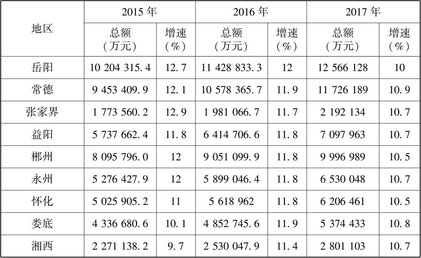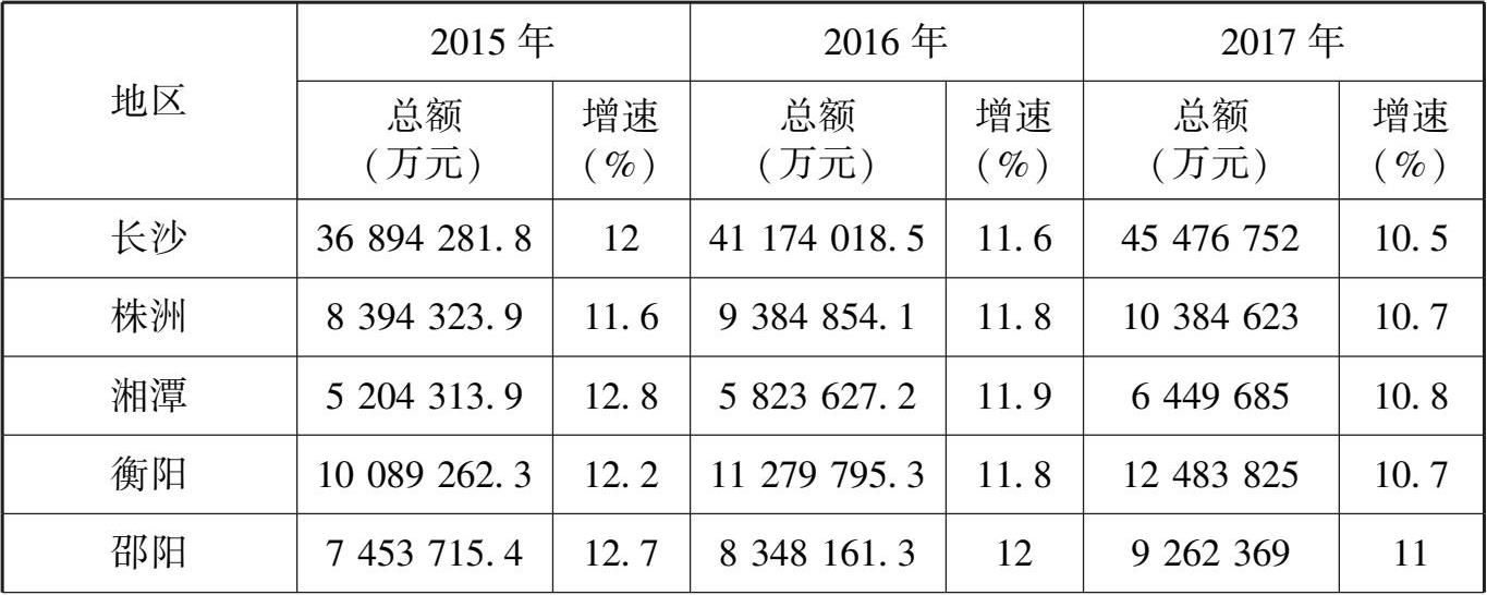 数据来源:湖南省各市(州)国民经济和社会发展统计公报。