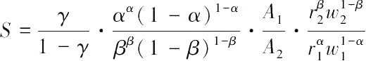 设S为国有经济与民营经济的比值,则在一般均衡时,