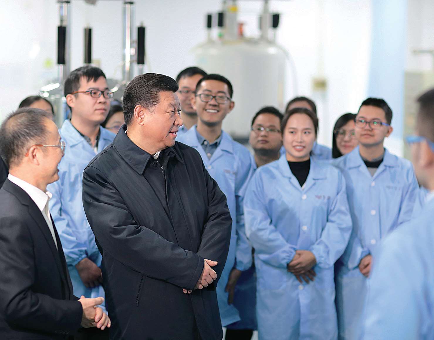 2019 年 1 月 17 日,习近平在南开大学元素有机化学国家重点实验室同师生交流。