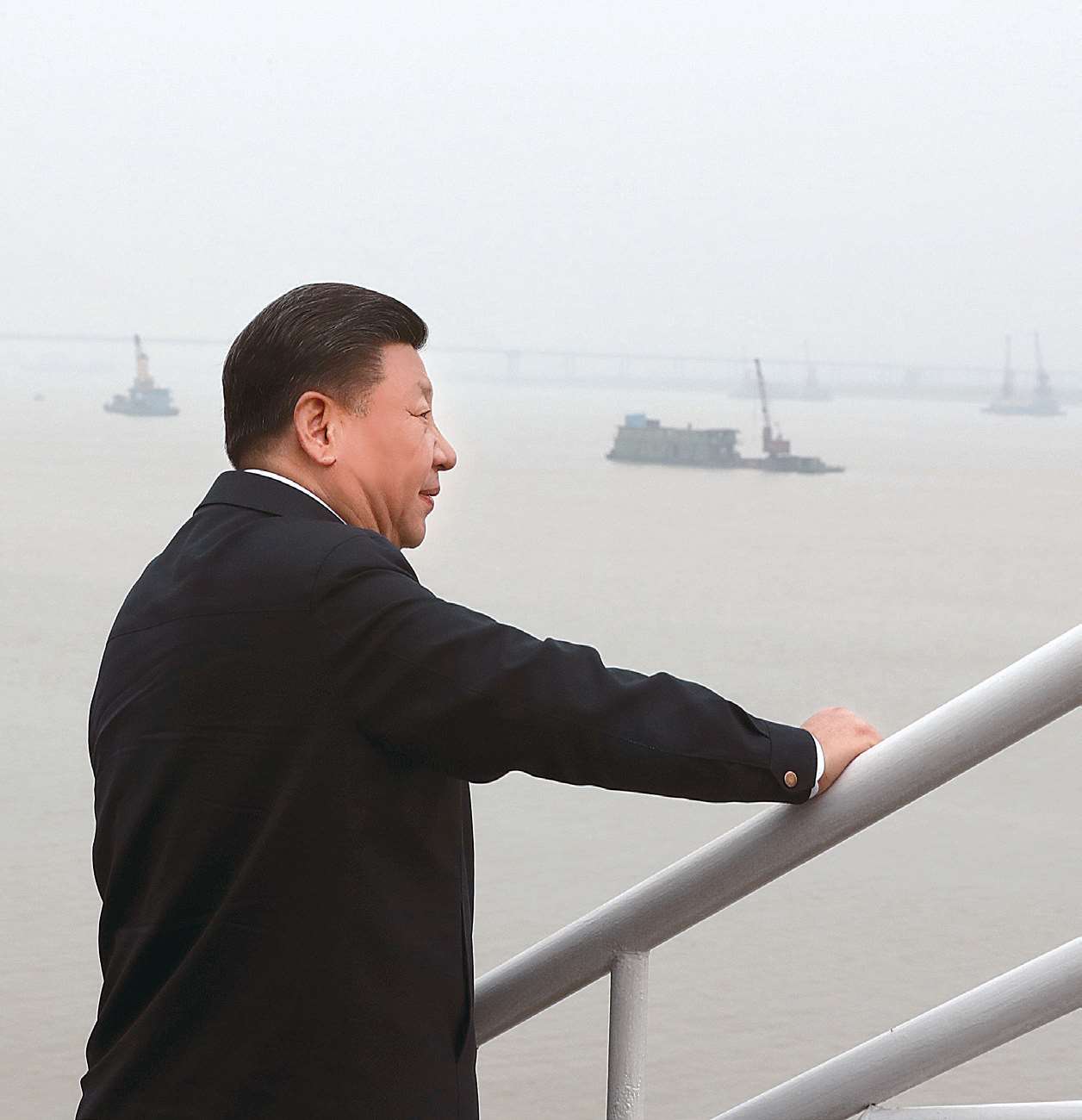 2018 年 4 月 26 日,习近平在湖北武汉市主持召开深入推动长江经济带发展座谈会并发表讲话。这是 25 日,习近平在湖南岳阳城陵矶水文站考察。