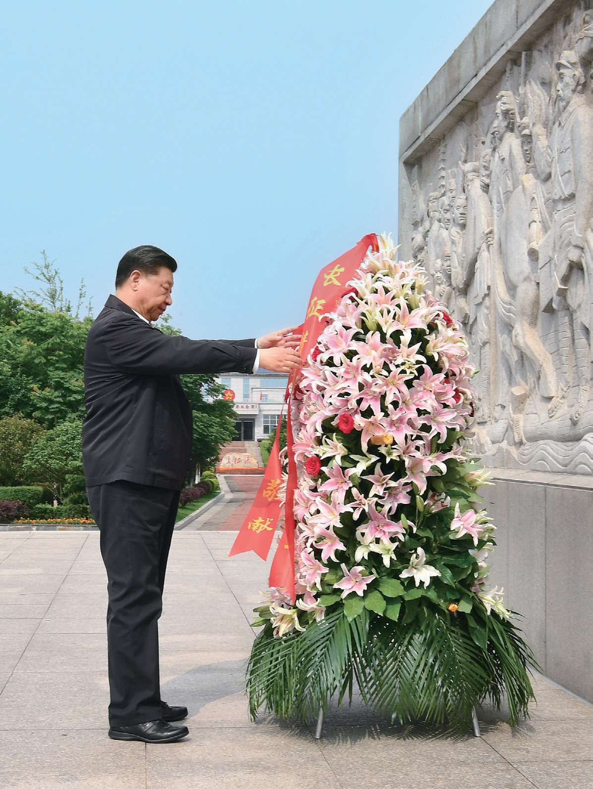 2019 年 5 月 20 日,在中共中央即将对“不忘初心、牢记使命”主题教育作出部署之际,习近平来到江西赣州市于都县,向中央红军长征出发纪念碑敬献花篮。