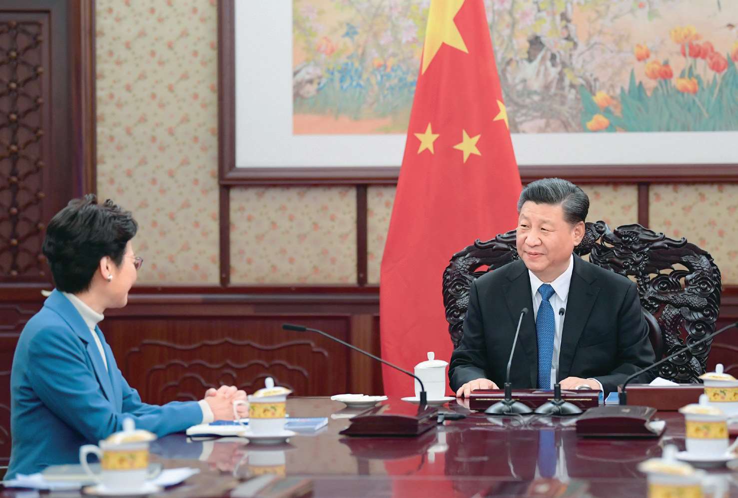 2019 年 12 月 16 日,习近平在中南海会见来京述职的香港特别行政区行政长官林郑月娥。