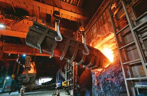 钢铁企业有序复工复产。2020 年 2 月 24 日,工人在唐山市丰润区一家钢铁企业炼钢炉前工作