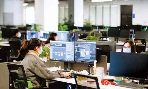 2020 年 3 月 18 日,在重庆市永川区大数据产业园,达瓦大数据先进影像中心的员工在办公