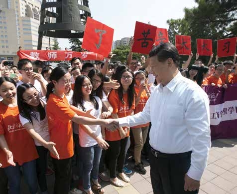 ※ 2014年9月9日,习近平总书记离开北京师范大学时,与闻讯赶来的师生们亲切握手。