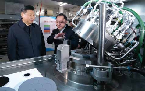 江教授向习总书记汇报了我们实验室的研究工作。LED技术作用大,应用广泛,但在2003年科技部提出“发展半导体照明计划”前,我国半导体照明上游产业几乎是一片空白,功率型芯片全部依赖进口。现在我们自主研制的硅衬底LED芯片,已建立起从上游芯片到中游封装再到下游应用的完整产业链。