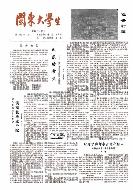 因此,在1988年、1989年全国两会期间,我和当时在北大读书的中学同学林忠就去代表驻地,找到时任宁德地区行署专员陈增光和闽东籍省领导,向他们汇报了自己的想法。得到陈增光专员的鼓励和支持后,我们共同发起创办了校园报《闽东大学生》,这是闽东籍大学生了解家乡、宣传家乡、智力支乡的平台。