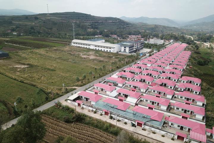 甘肃省定西市渭源县元古堆村已经整体脱贫,村民们集体搬进了干净整齐的房屋。