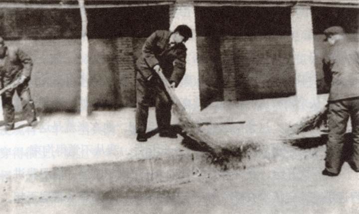 1983 年 12 月 23 日,习近平在正定县城东门里与军民一起打扫卫生。