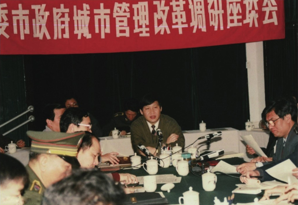 1992年4月,习近平参加福州市委市政府城市管理改革调研座谈会。