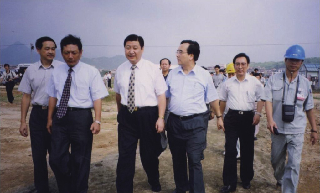 1999年8月,习近平(左三)调研东南汽车青口工地建设情况。
