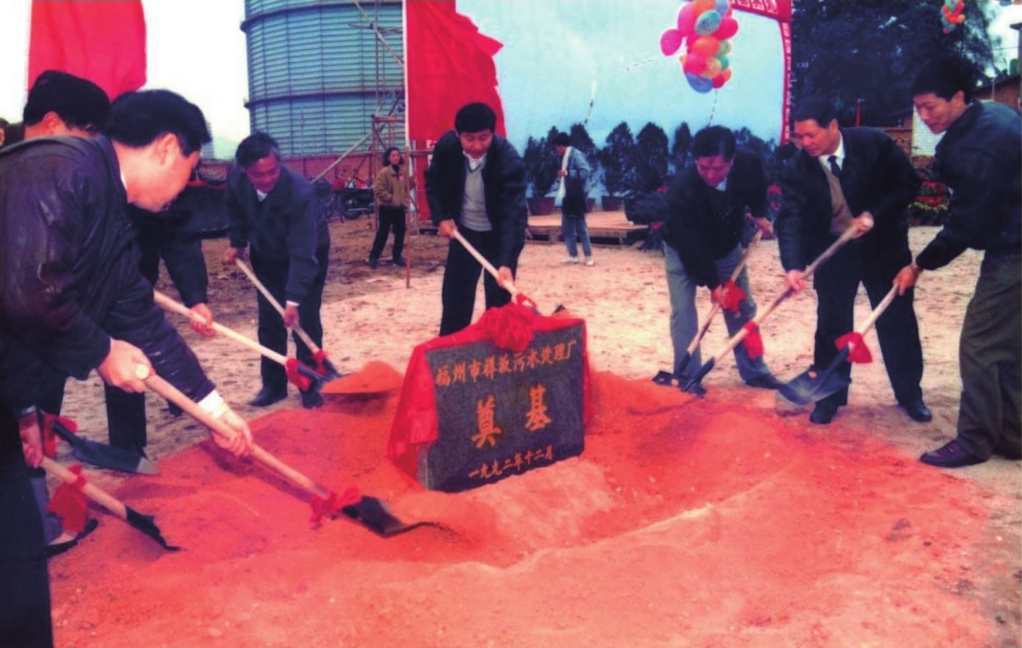 1992年12月,习近平(右四)参加福州市祥坂污水处理厂奠基典礼。