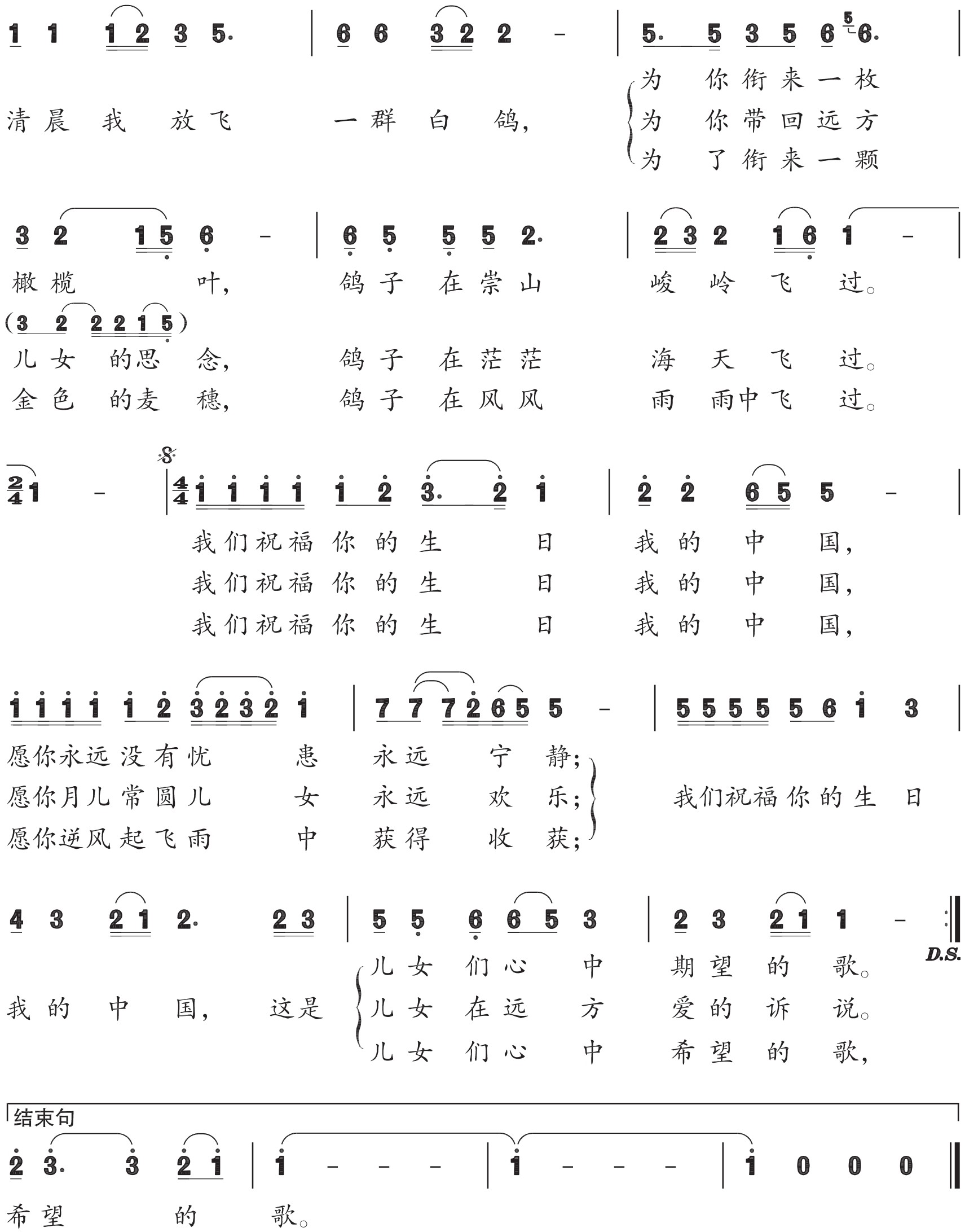 《今天是你的生日,中国》是1989年为庆祝中华人民共和国四十周年专题文艺晚会创作的主题歌,最初叫《十月是你的生日》。歌词以清晨放飞的白鸽为引线,表达了华夏儿女对祖国生日的祝福,构思新颖,文学语言清新、自然;音乐大气、亲切、流畅。这首歌经韦唯演唱后迅速流传全国。