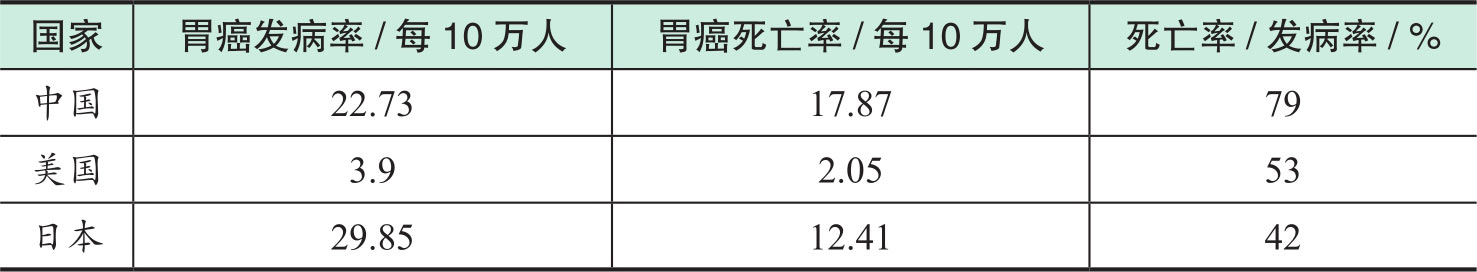 表2 中、美、日三国胃癌发病率与死亡率比较