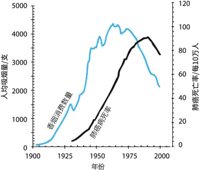 美国人吸烟人数与肺癌死亡率关系