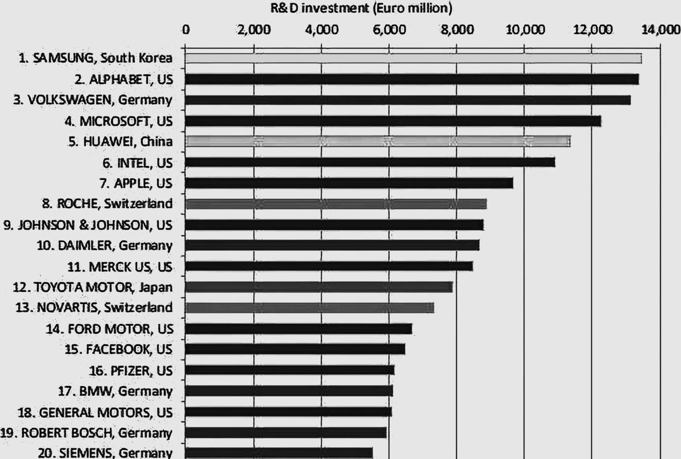 图1-6 2017—2018年度全球研发投入前二十家企业榜单