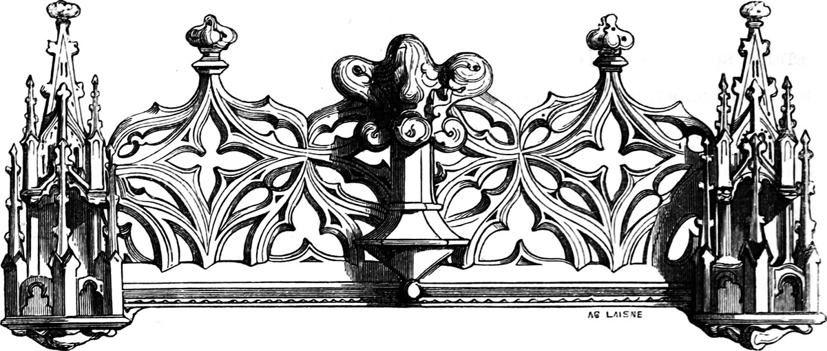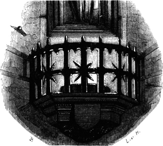 然而,街道越来越黑,行人越来越少。宵禁钟声早已敲过,街上偶然能碰到一个行人,窗口偶然能看到一线亮光。格兰古瓦跟着吉卜赛少女,走进了古圣婴公墓周围迷宫般的小巷、岔道和胡同,那些街巷错综复杂,就像一团被猫抓乱了的线球。“这些街道真是不讲逻辑!”格兰古瓦说。他在这迂回曲折的迷宫里走得晕头转向,可那少女却好像熟门熟路,寸步不乱,并且越走越快。而格兰古瓦却不知道自己在哪里,幸亏在一条街的拐弯处,隐约看见菜市场那根绑罪犯的八角形示众柱,示众柱镂花尖顶的黑影,清楚地显现在韦德莱街一个亮着灯光的窗户上。