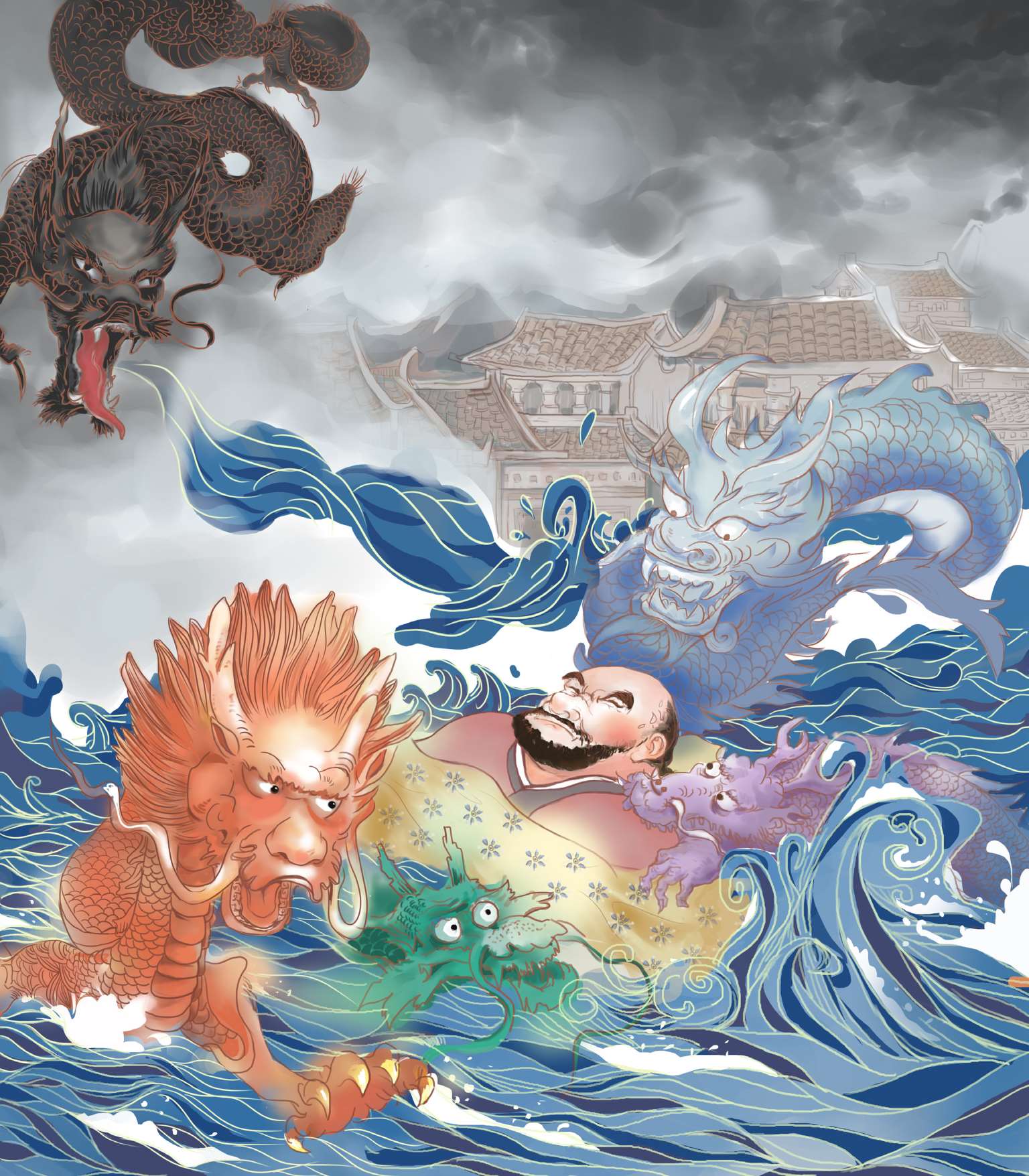 可就在九人进城的头一天晚上,重庆的知府做了一个奇怪的梦:九条张牙舞爪的恶龙飞到了重庆府的上空,不断往下方喷水,整个重庆府都被水给淹了。知府被这个梦给吓醒了,翻身爬起来,呼哧呼哧喘着粗气。这虽然只是个噩梦,但从前的人迷信,觉得这种异常的梦肯定预示了什么。知府于是大喊,让武官派兵,去各个城门口守着,见到有龙就赶紧抓起来。