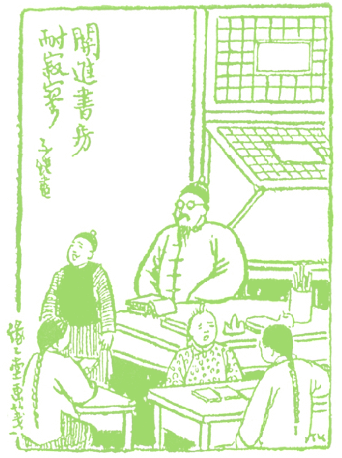 私塾没有课程表,但大都有个规定:早上“习字”,上午“背旧书”,下午“上新书”,放夜学之前“对课”。