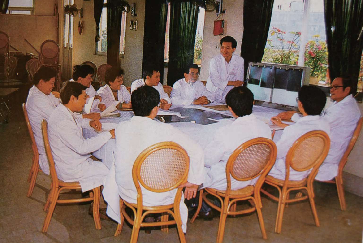 图3 黄敏院长、黄崇侠主任(站立讲解者)参加正骨医院病例讨论