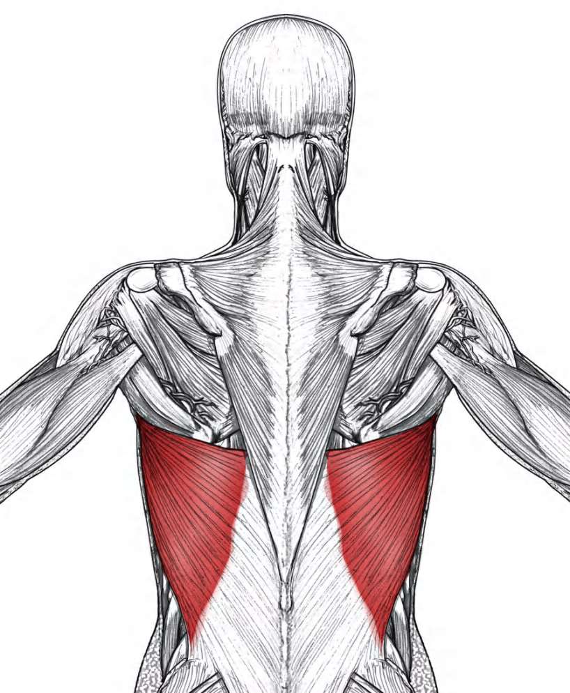 (1)呈三角形,以腱膜起自下6个胸椎和全部腰椎棘突、骶正中嵴及髂嵴后面,肌束向外上方集中,以扁腱止于肱骨小结节嵴。