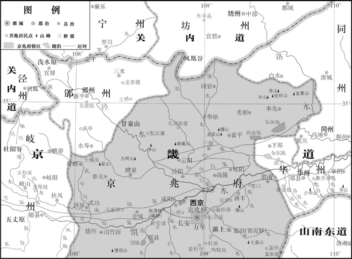 地图-2 唐开元中京兆府及近辅州辖县详图