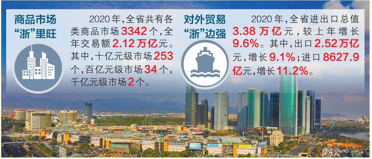 为最大限度地减少疫情影响,义乌推出20项干货满满的繁荣市场措施,内容涵盖拓展上游产业链、强化境外采购商招引和服务、开拓内贸销售市场、推动线上线下融合和市场贸易展示外延、完善贸易配套服务等8个方面,一手稳外贸订单,一手拓国内销售网络。2020年,义乌外贸出口同比增长4.8%,以内贸为主的快递业务量达到71亿余件。