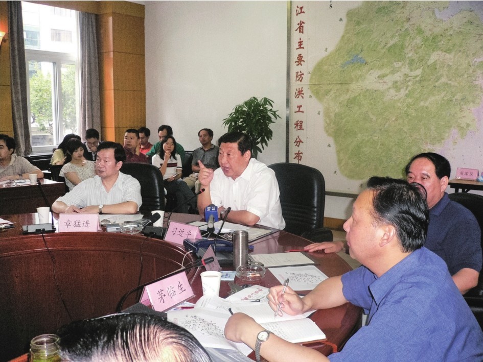 2005年9月,习近平在省防汛防旱指挥部指挥全省防御第15号台风“卡努”工作