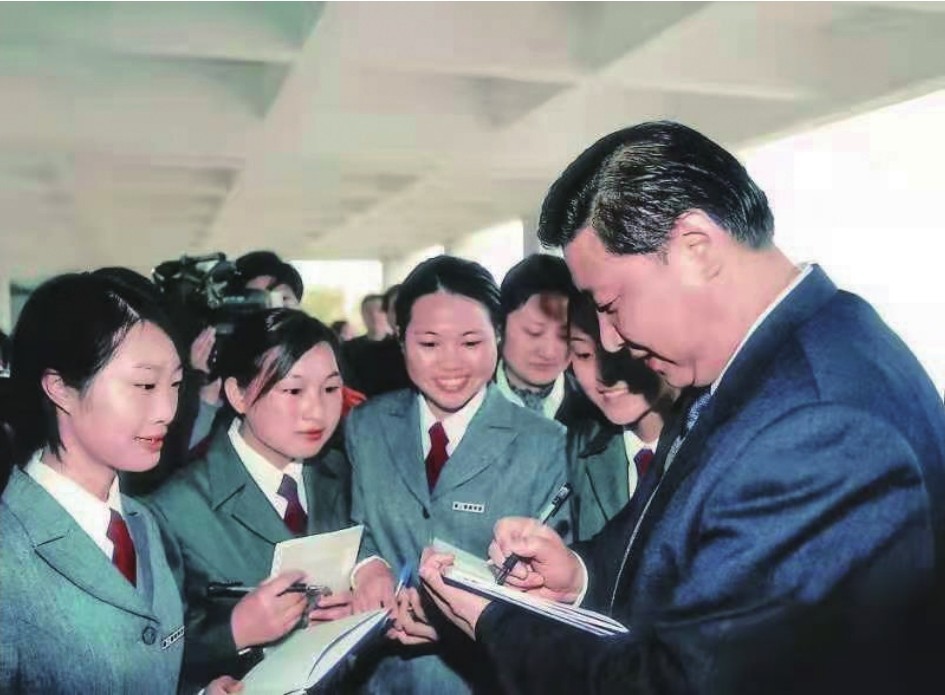 2003年4月,习近平在浙江育英职业技术学院调研