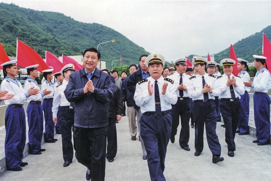 2003年5月,习近平在宁波市象山县看望海军潜艇部队官兵