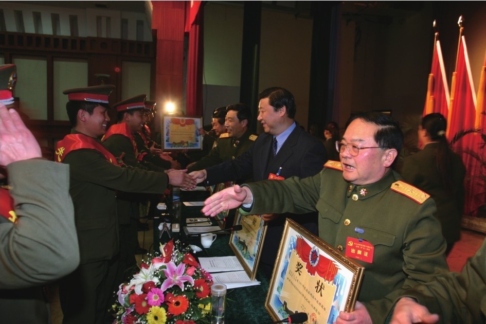 2006年1月,习近平出席省军区党委十届五次全体(扩大)会议时为受表彰的官兵颁奖