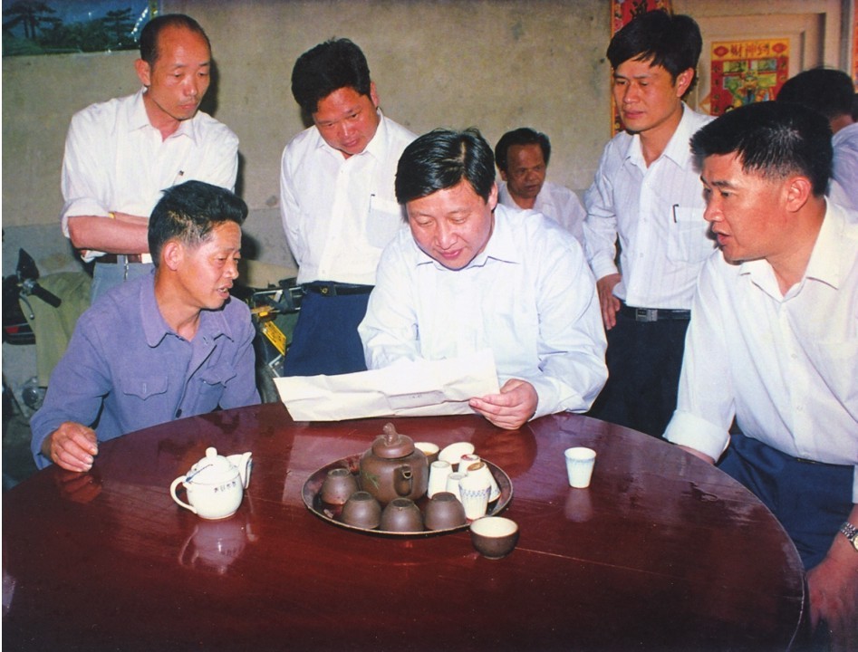 1996年5月,习近平在龙岩地区永定县城郊乡中坑村调研扶贫工作
