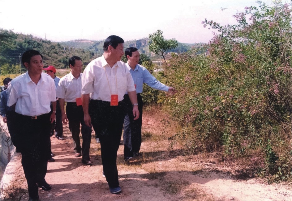 随后,在生态园后山石壁下的水土流失治理现场,我带着当年的“作战图”,向他汇报了两年来的治理情况。看着两年前光秃秃的山岭现在已有了葱葱绿意,习近平同志的脸上露出了欣慰的笑容。可以看出,他为山岭治理带来的可喜变化感到由衷的高兴。他讲了一段话,给我留下深刻印象。他说:“长汀县水土流失面积1985年是146.2万亩,到1999年是110.65万亩,15年治理45万亩,减少水土流失面积35.55万亩。按照这种速度,长汀的水土流失治理还需46年。这两年加大了治理力度,一年治理十几万亩,8到10年可以完成现在的治理任务。长汀水土流失治理,是为民办实事项目,是一项继往开来的事业,现在取得了成绩。为了让人民群众生活在山清水秀的优美环境里,还要继续发扬谷文昌精神,一任接着一任干,锲而不舍抓下去。水土保持是生态省建设的重要内容,又是生态省建设最薄弱的地方,对水土流失特别严重的地方要重点治理,完善治理机制,拓宽投资渠道,真正把水土流失治理这项工作作为提高为人民服务质量的大事抓紧抓实,以点带面,总结经验,对全省水土保持工作起到典型示范作用。”