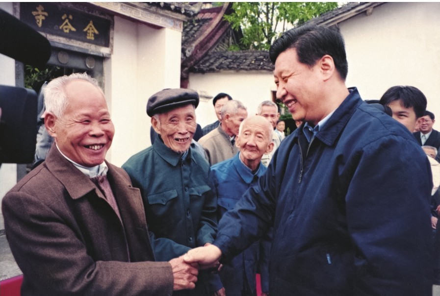 1999年11月,习近平在龙岩市永定暴动遗址调研时看望慰问“五老”人员