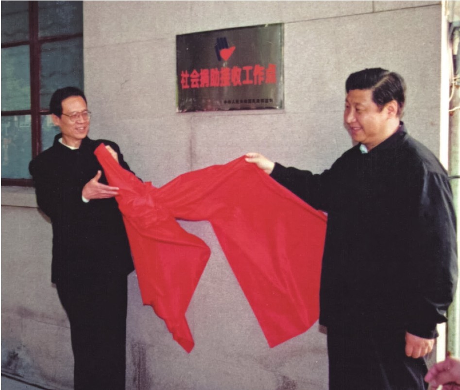 2002年1月,习近平为福建省政府大楼社会捐助接收工作点揭牌