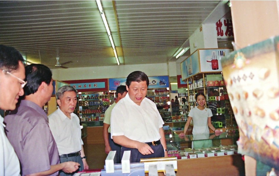 2002年6月,习近平在厦门市同安区大嶝对台小额商品交易市场调研