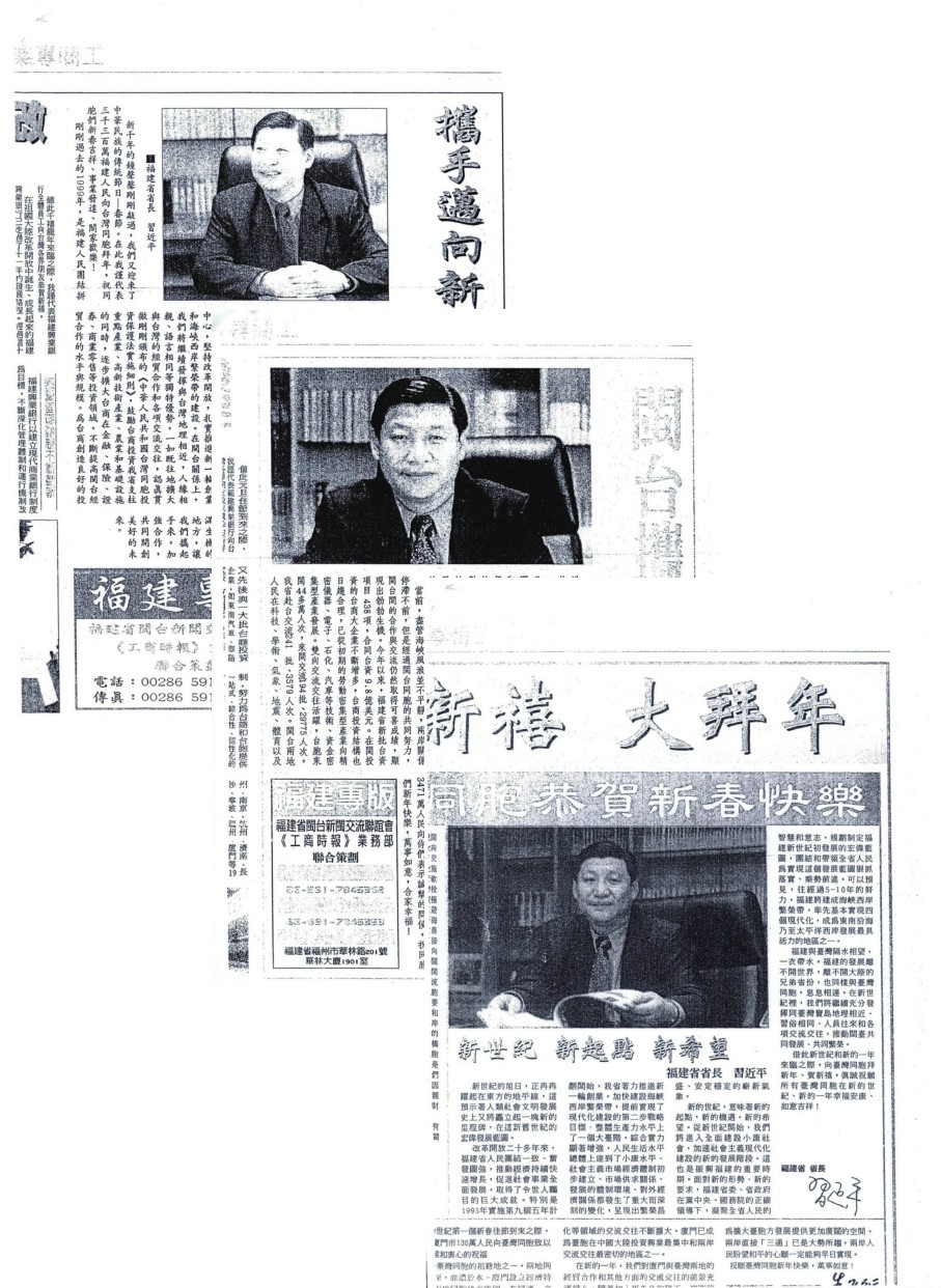 2000—2002年,习近平在台湾《工商时报》上连续三年发表新年贺词