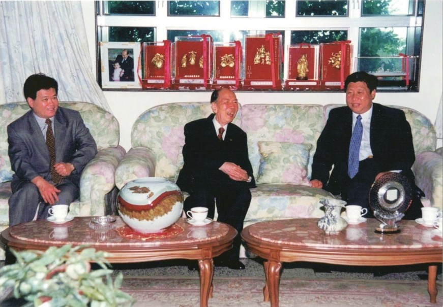2001年10月,习近平赴港澳访问期间,看望时任全国政协副主席马万祺先生(中)